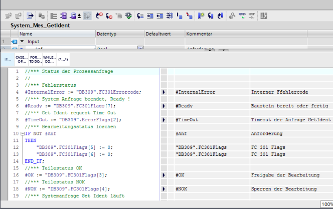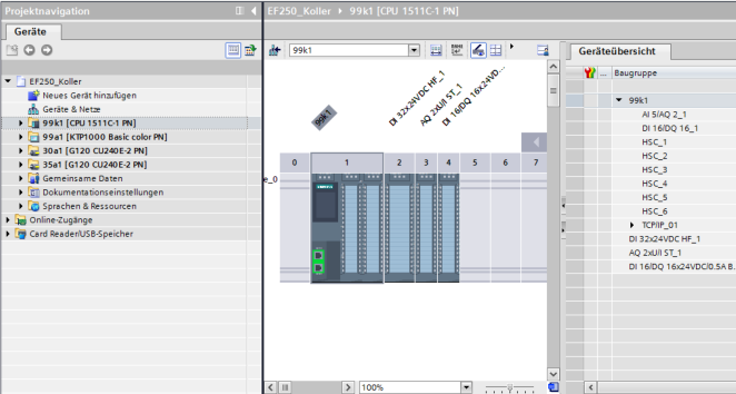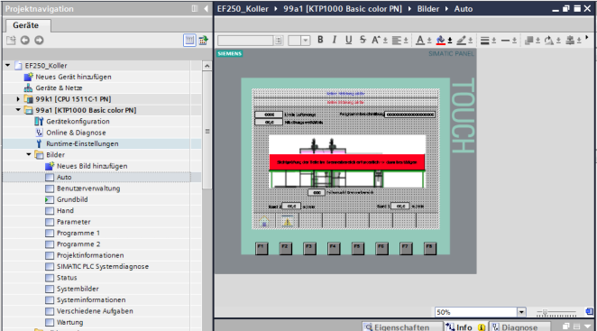 TIA - PortalDie neue Steuerungsfamilien SIMATIC S7-1200 und S7-1500 zusammen mit dem Totally Integrated Automation Portal (TIA Portal) bietet zahlreiche neue Möglichkeiten, die Pro-duktivität einer Maschine weiter zu erhöhen und im Engineeringprozess noch effizienter zu werden. Mit dem TIA Portal werden die SIMATIC S7-1200/1500 unter SIMATIC STEP 7 V13konfiguriert und programmiert. Die Anbindung eines SIMATIC HMI Comfort oder BasicPanels erfolgt mit SIMATIC WinCC Advanced V13 (TIA Portal) oder SIMATIC WinCC Professional V13 (TIA Portal) rundet die grundlegenden Schritte ab.Das Totally Integrated Automation Portal, auch TIA Portal genannt, bietet Ihnen die komplette Funktionalität für die Realisierung einer Automatisierungsaufgabe zusammengefasst in einer übergreifenden Software-Plattform. Mit dem TIA Portal wurde erstmals eine gemeinsame Arbeitsumgebung für ein durchgängiges Engineering mit verschiedenen SIMATIC Systemen innerhalb eines Frameworks zur Verfügung gestellt. Deshalb ermöglicht das TIA Portal auch erstmalig ein gesichertes und komfortables systemübergreifendes Arbeiten. Alle benötigten Softwarepakete von der Hardware-Konfiguration über die Programmierung bis zur Visual-isierung des Prozesses sind in einem umfassenden Engineering Framework integriert.Übersicht der Komponenten:Beim Arbeiten mit dem TIA Portal wird auf effiziente Art und Weise die Realisierung der Automatisierungslosung durch folgende Features unterstützt:Durchgangiges Engineering mit einem einheitlichen Bedienkonzept. Prozessautomatisierung und Prozessvisualisierung gehen "Hand in Hand".Konsistente zentrale Datenhaltung mit leistungsfahigen Editoren und durchgangiger Symbolik Einmal angelegte Daten sind in allen Editoren verfugbar. Anderungen und Korrekturen werden automatisch innerhalb des gesamten Projektes ubernommen und aktualisiert.Ubergreifendes Bibliothekskonzept Nutzen Sie die vorgefertigten Anweisungen und verwen-den Sie bereits existierende Projektteile wieder.Mehrere Programmiersprachen: Funf verschiedene Programmiersprachen stehen Ihnen für die Realisierung Ihrer Automatisierungsaufgabe zur Verfugung.Ein Projekt besteht aus der Projektdatei und beinhaltet alle Daten, die bei der Erstellung einer Automatisierungslösung entstehen. Die Daten werden in Form von Objekten abgelegt. Die Objekte sind innerhalb eines Projekts in einer Baumstruktur (Projekthierarchie) angeordnet.Die Basis der Projekthierarchie bilden die Geräte und Stationen und deren zugehörige Pro-jektierungsdaten und Programme.S7-1200 SteuerungsfamilieDieses Kontrollersystem ersetzen die alte S7-200 Familie ist jedoch in der Struktur der Pro-grammierung einer S7-300 ähnlich. Die Handhabung des strukturierten Text als Programmier-sprache ist deutlich einfacher dem Step7 Vorgänger gegenüber. Im Gegensatz zur S7-200 wer-den bei der S7-1200 auch DBs wie bei einer S7-300 eingesetzt. Programmierbeispiel unter strukturiertem Text:Beispiel einer einfachen Hardwarekonfiguration:S7-1500 SteuerungsfamilieDieses Kontrollersystem ersetzen die alte S7-300/400 Familie ist jedoch in der Struktur der Programmierung einer S7-3xx sehr ähnlich. Auch hier ist die Handhabung des strukturiertem Text gegenüber der Programmierung unter Step7 V5.5 deutlich verbessert. Nachfolgend eine Hardwarekonfiguration mit Controller, Panel und Frequenzumrichter:Nach der Hardwarekonfiguration das Beispiel für eine Panel Einbindung:Einbindung eines Sinamics Frequenzumrichter:TIA - Entwicklungsumgebung:Meine aktuelle TIA-Entwiklungsumgebung beinhaltet: